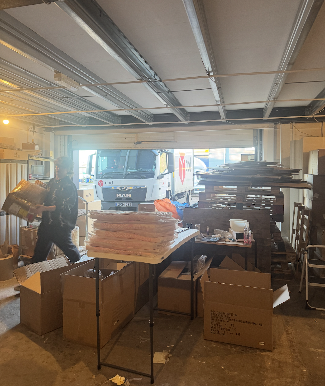 Back in the early days, we even needed the whole creative team to come up and help us with goods in and emergency dispatch just so we could close the roller shutter door without stock left outside. It was a nightmare.
